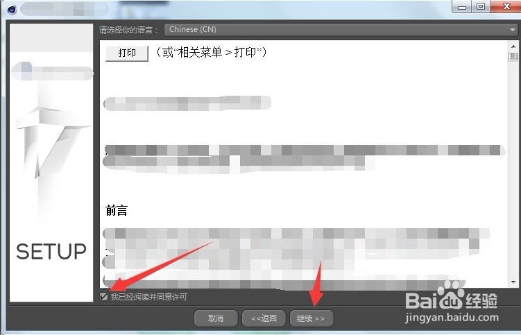 安裝第六步:勾選我已經(jīng)閱讀并同意許可并點(diǎn)擊繼續(xù)。