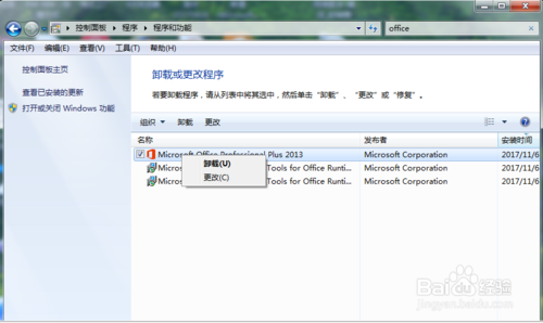 找到”office“程序后,右鍵單擊選中的office程序,選擇卸載選項。