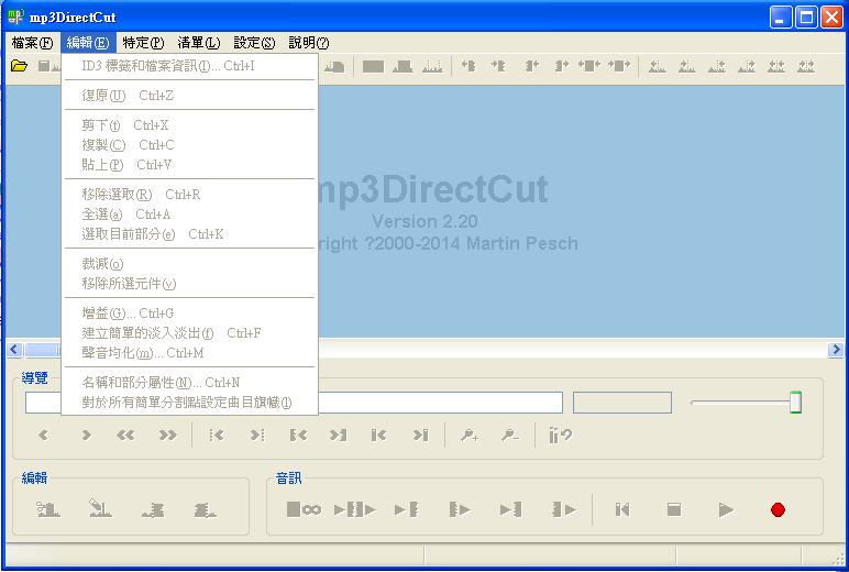 2.從圖1的程序畫面的功能選項,點選檔案→New program window,這時即可開啟另外一個新的Mp3DirectCut程序畫面,