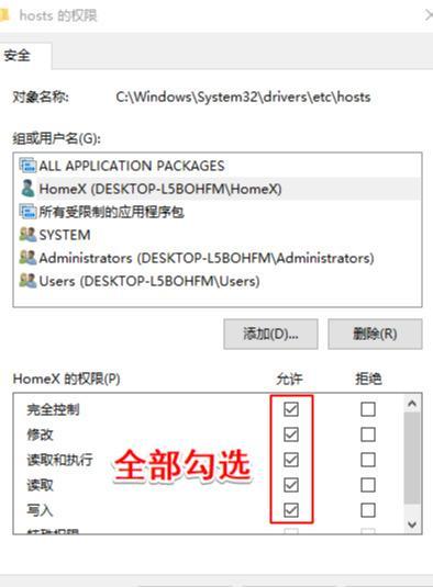 步驟五:紅框中的小方框全部勾選上,然后點(diǎn)擊「確定」,會(huì)彈出對(duì)話框,選擇「是」,然后全部「確定」。最后再次打開(kāi) hosts 添加代碼即可。
