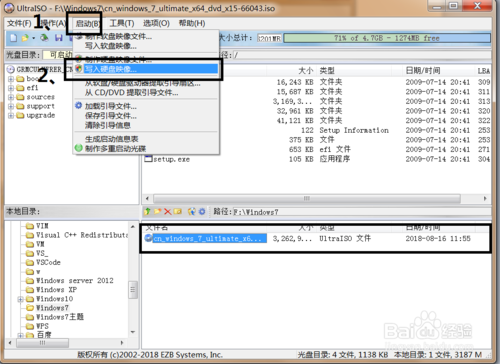 4、選擇好鏡像之后,在選項(xiàng)卡選擇“啟動(dòng)”,然后再選擇“寫(xiě)入硬盤(pán)映像”