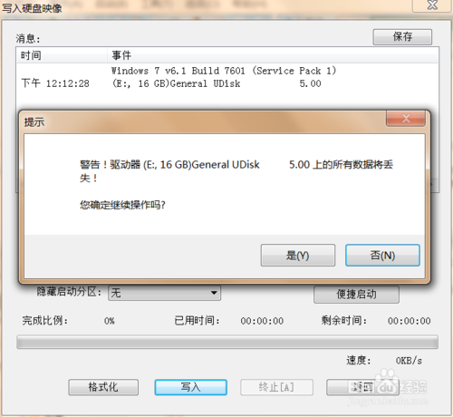 7、最后選擇寫(xiě)入,在彈出的提示窗口選擇“是”,最后等待寫(xiě)入完成就可以了