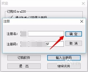 2、安裝完成之后我們需要輸入注冊(cè)碼才能使用UltraISO,因?yàn)檫@是一款收費(fèi)的軟件,點(diǎn)擊右邊的輸入注冊(cè)碼然后點(diǎn)擊確定即可,之后再重新打開(kāi)UltraISO軟件就可以使用了。
