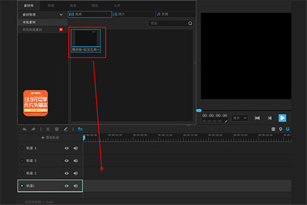 3、剛剛導(dǎo)入的是視頻素材文件,你可以在視頻欄中找到素材,將想要添加音樂的視頻素材文件拖動到下方的軌道中,如下圖所示: