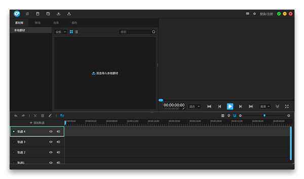 新建項目進入軟件后,軟件界面如下圖所示,首先第一件事就是導(dǎo)入素材到素材庫,在這里放置剪輯視頻所需要用到的素材。