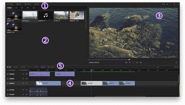 1、視頻多軌道擁有視頻、音頻多軌道組成時間軸??赏瑫r添加視頻、圖片、音頻讓你的視頻制作更豐富出彩!