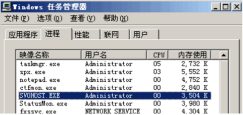 3、接下來(lái)按Alt+Ctrl+Del調(diào)出任務(wù)管理器,結(jié)束?“高強(qiáng)度文件夾加密大師?9000?破解版”對(duì)應(yīng)的程序進(jìn)程——SVOHOST.EXE,以及Windows資源管理器視窗進(jìn)程——explorer.exe。