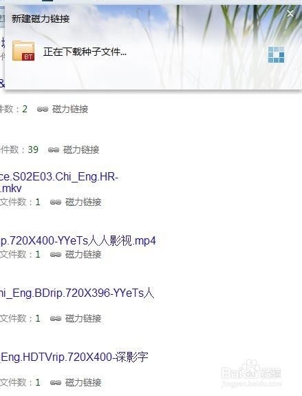 看來選則差不多了,點(diǎn)擊【磁力鏈接】,如果你的迅雷插件正常或者修復(fù)過,應(yīng)該會(huì)彈出對話框,分析鏈接中。如果沒有下條。