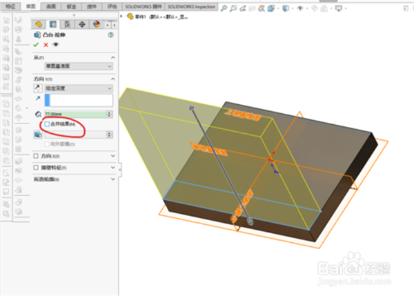 3、再創(chuàng)建一個(gè)與之相交的板材。如下圖所示,取消合并結(jié)果。
