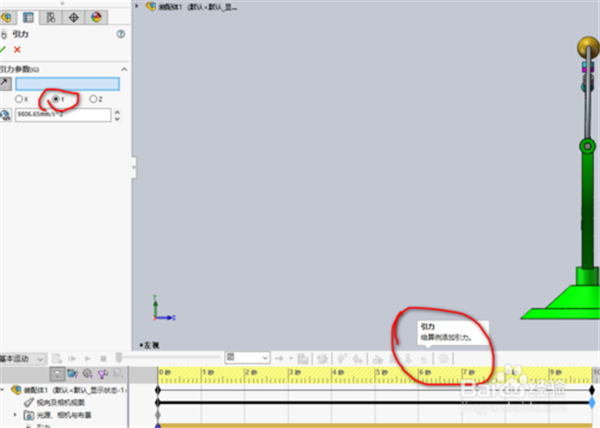 5、添加引力條件,方向選擇Y軸的反方向。大小默認(rèn)設(shè)置。