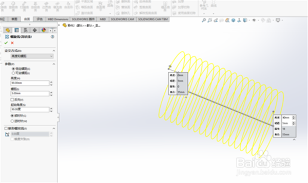 3、創(chuàng)建掃描特征。選擇圓截面,直徑5,路徑選擇螺旋線。