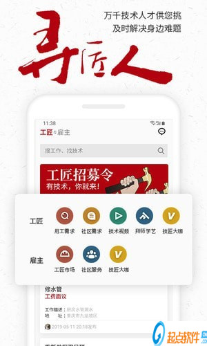【匠人】從此告別求職奔波,從別人挑自己轉(zhuǎn)變成自己挑活兒做。一機(jī)在手,即可與雇主實(shí)時(shí)溝通,自主找活兒;