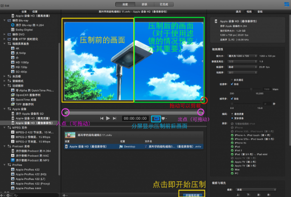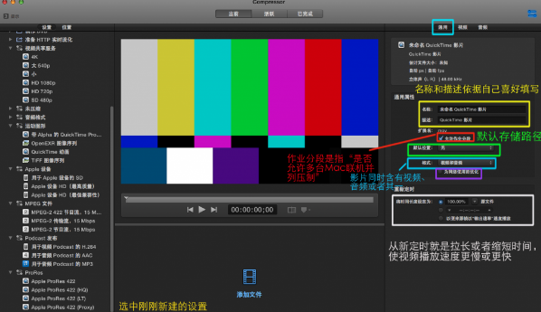②檢查器所檢視的設(shè)置的具體值是看你選中了什么,比如選中【位置】里的【桌面】、【設(shè)置】里的【Apple ProRes 442】、以及待壓制的視頻。