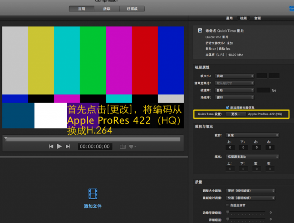 1.如圖,點(diǎn)擊QuickTime設(shè)置中的【更改】,切換為H.264編碼。