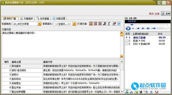 5、具備文稿轉(zhuǎn)音頻文件功能、錄音功能、背景音樂(lè)播放等功能,是廣告宣傳和音頻制作的好助手。