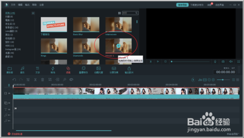 3、選擇一個濾鏡,把它拖入軌道上,或者是點(diǎn)擊濾鏡上加號。