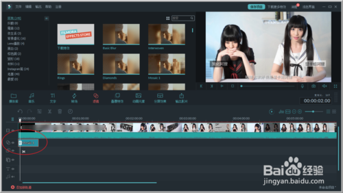 7、依次把濾鏡拖入到軌道上即可。