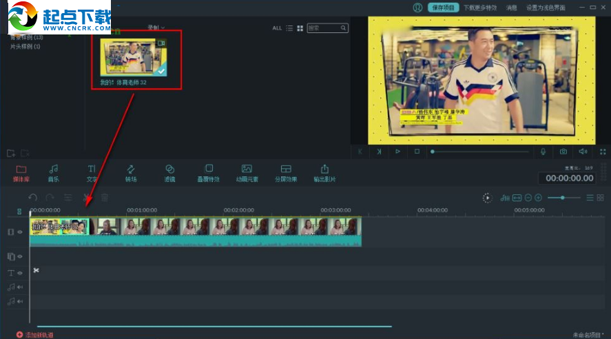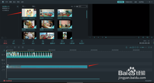 3、我們添加視頻至媒體庫列表后,我們將其拖動至下方視頻時間軸中。