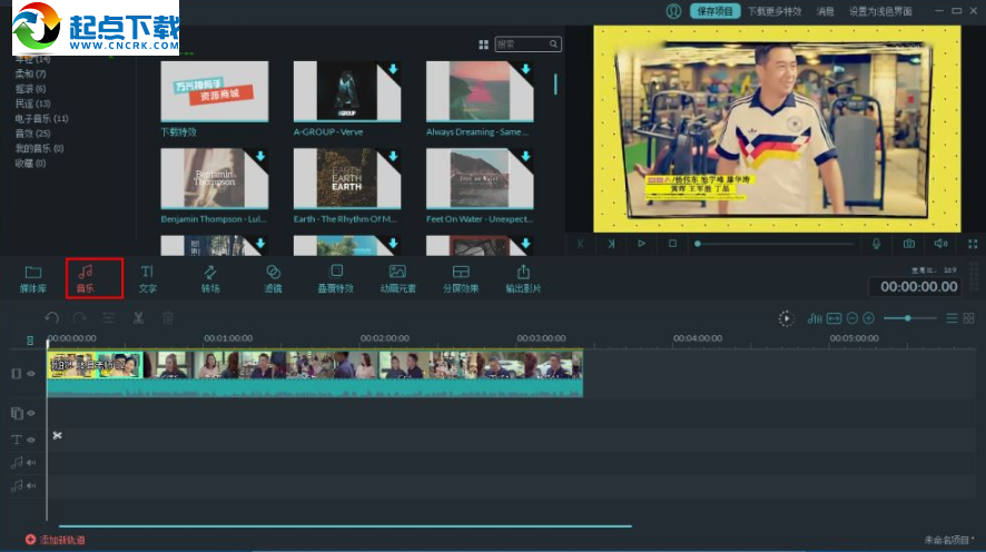 4、用戶點(diǎn)擊【音樂】按鈕,并進(jìn)入音樂添加界面。