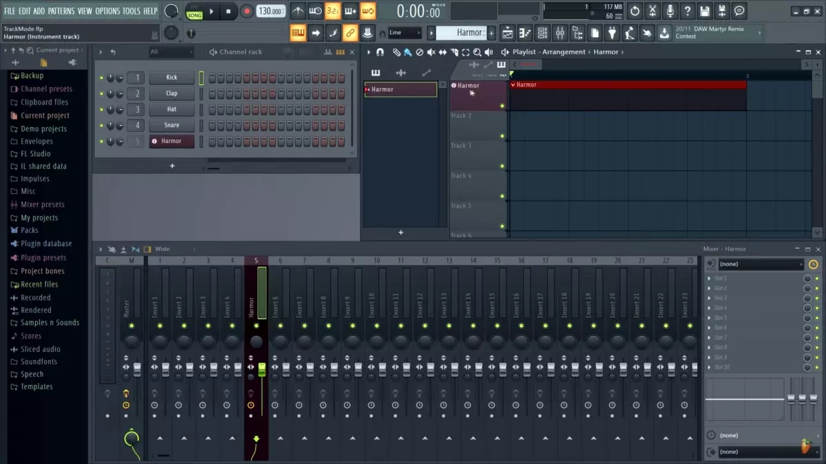播放列表跟蹤模式 —— 通過對頻道樂器,播放列表軌道和混音器軌道進行分組來組織項目并加快工作流程 。對組中任何成員的名稱,顏色和/或圖標(biāo)的更改將會影響整個鏈?;蛘撸瑢菲骱托Ч寮蛞纛l文件放在播放列表軌道標(biāo)題上。工具>宏>重置空播放列表軌道 —— 將所有未使用的播放列表軌道重置為默認(rèn)顏色,圖標(biāo)和名稱。