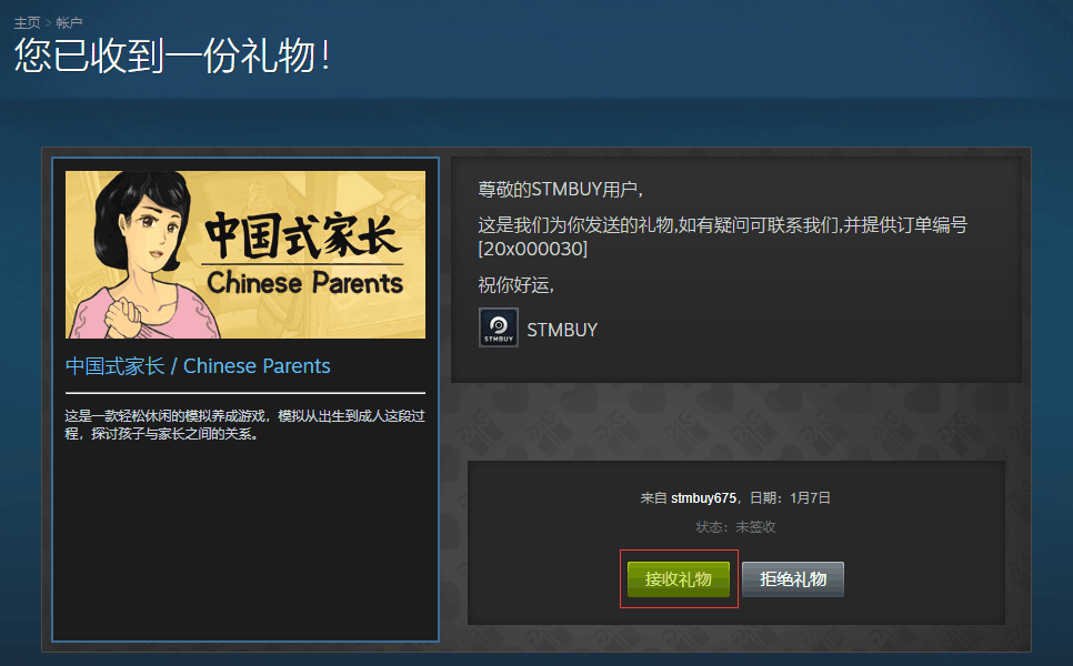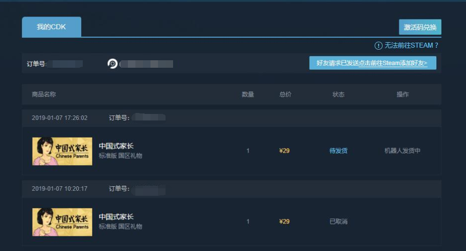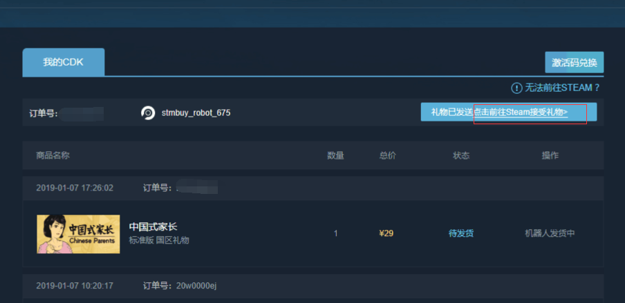 3. 接受好友后,機(jī)器人將自動(dòng)將商品發(fā)至您的steam,請前往簽收。