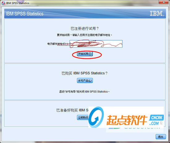6、破解完成后,運行SPSS24.0快捷方式,輸入郵箱地址,然后點擊開始試用