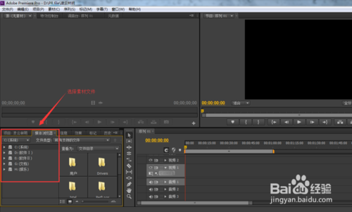 4、建立好序列后,點(diǎn)擊屏幕左下角的媒體瀏覽器,找到素材文件,然后拉入編輯框。