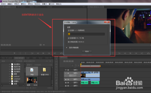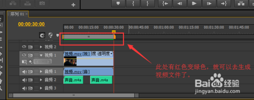 6、當(dāng)處理好后,按ENTER 鍵 進(jìn)行渲染。渲染成功后素材上方的紅色細(xì)條會(huì)變成綠色。變成綠色后,就可以去生成文件了。