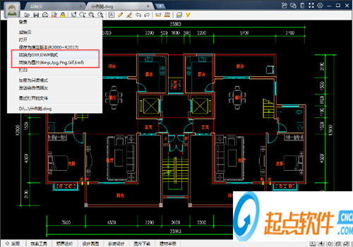 3、接著在彈出的選項中就可以看到“轉(zhuǎn)換為DXF,DWF格式”以及“轉(zhuǎn)換為圖片(Bmp,Jpg,Png,Gif,Emf)”的功能了;
