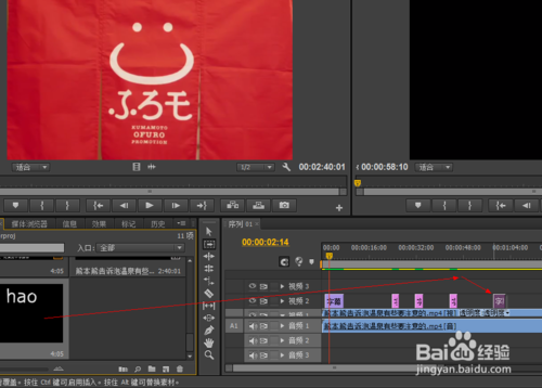 8、節(jié)目面板跟源面板差不多,同樣具有入點和出點,那么這里的出點和入點分別有什么作用呢?在節(jié)目面板預覽的時候,當你想去掉一段片段時,那就在這段片段的開始和結束處分別設置出入點吧。設置好了之后,點擊圖中“減去”按鈕即可去掉片段。這時按住時間線上視頻,可移動視頻的具體位置,現(xiàn)在趕快把中間的空位擠掉吧。