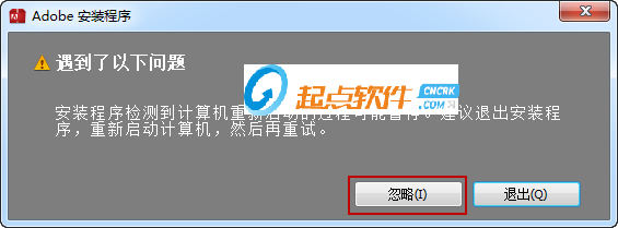 2、啟動(dòng)安裝程序以后,會(huì)出現(xiàn)下面的窗口,點(diǎn)擊忽略繼續(xù)安裝。