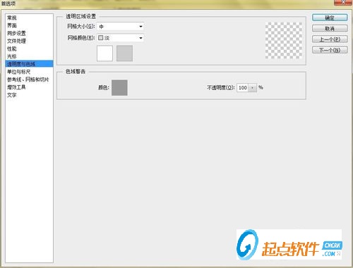 4.切換到【透明度與色域】,可以設(shè)置網(wǎng)格大小和網(wǎng)格顏色,用戶可以根據(jù)自己的需要進(jìn)行相應(yīng)的設(shè)置。