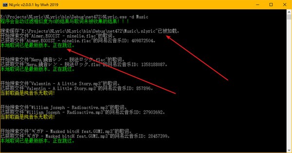 3、輸入命令"NLyric.exe -d 音樂文件夾"