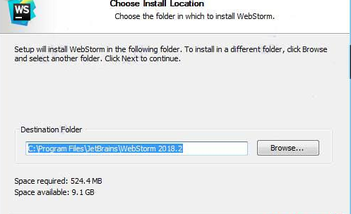 2、運(yùn)行“WebStorm-2018.2.exe”開始安裝,默認(rèn)安裝目錄【C:\Program Files\JetBrains\WebStorm 2018.2】