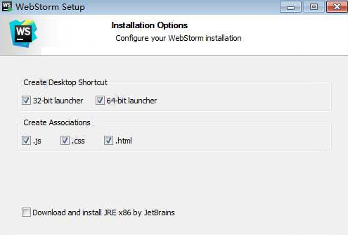 3、勾選創(chuàng)建webstorm 2018.2桌面快捷方式,包括32位和64位,以及自行選擇關(guān)聯(lián)文件格式,建議全選;