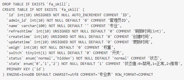FastAdmin的數(shù)據(jù)庫(kù)安裝文件保存在 application/admin/command/Install/fastadmin.sql