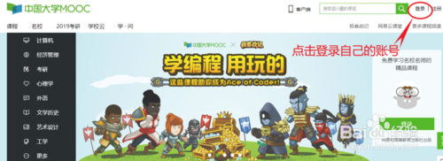 進入中國大學MOOC,登錄自己的賬號。