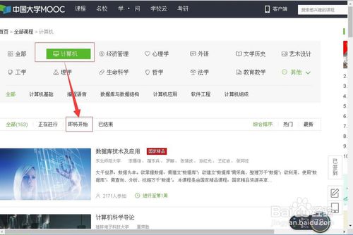 在全部課程中,根據(jù)自己的需要,找到所需要課程所在的分類,如“計算機”;