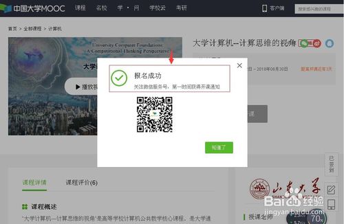 提示報名成功,到時候就可以在線參加該課程的免費學習了。