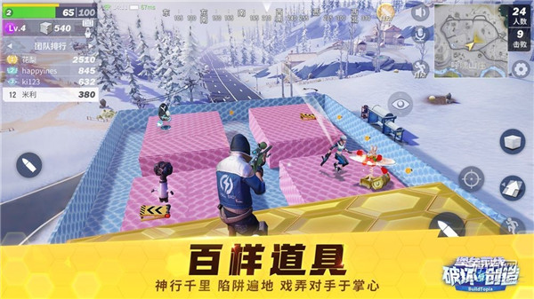 1、建造是非常好用的功能,可以搭橋前往一些去不到的地方,撿一些撿不到的裝備寶箱。一鍵建造還能瞬間制造出掩體保護(hù)小伙伴。合理的運(yùn)用建造可以讓你變得更加強(qiáng)大。