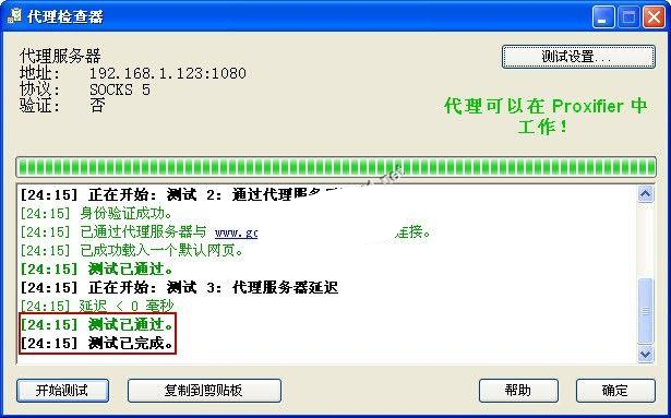 6) 在彈出“代理檢查器”對話框中,將顯示測試信息。