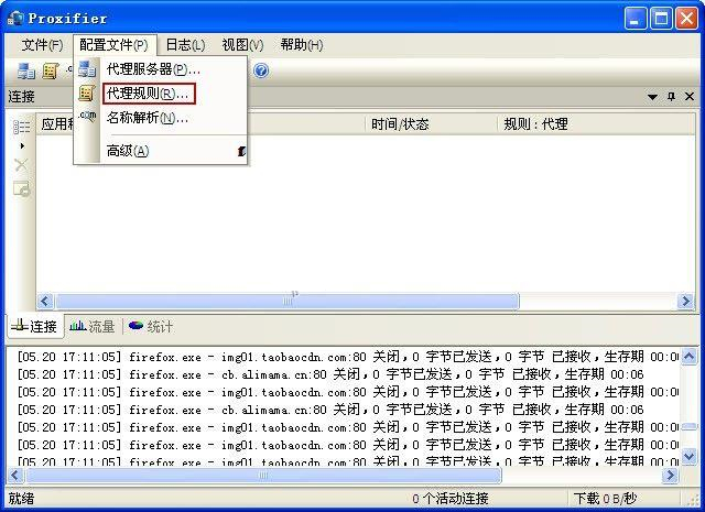 1) 在Proxifier的“配置文件”菜單上,單擊“代理規(guī)則”選項。