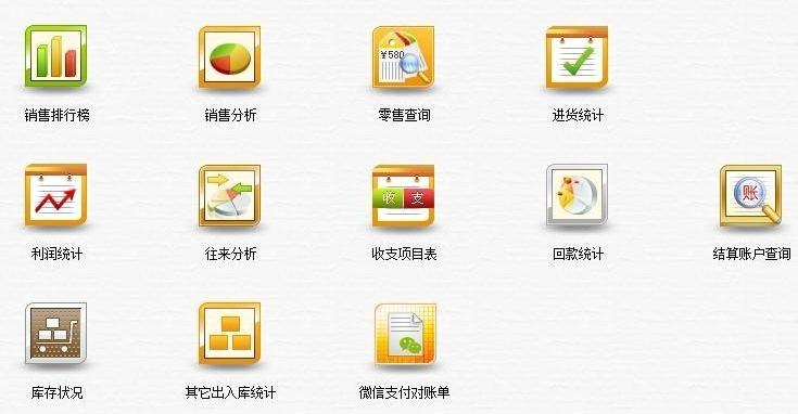 利潤統(tǒng)計、往來分析、收支項目表、回款分析、結(jié)算賬戶查詢