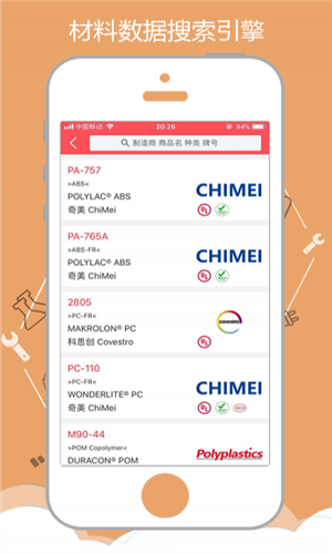 【工業(yè)原料技術(shù)數(shù)據(jù)搜索引擎】 工業(yè)材料數(shù)據(jù)庫,匯聚全球1000多家知名化工廠,覆蓋300多個材料種類,二十幾萬個材料牌號的材料應(yīng)用技術(shù)數(shù)據(jù),并包含UL、FDA、RoHS、MSDS等證書。通過材料搜索引擎,可以快速找到所需材料。