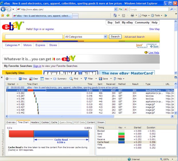 HttpWatch能夠顯示瀏覽器事件計時與網(wǎng)絡級HTTP瀑布圖表。比如Render Start和Page Load等計時都是用來確定頁面內容開始顯示頁面似乎完成了的有用的指標。