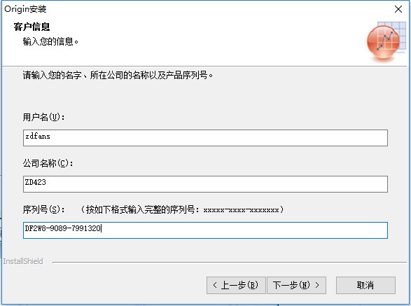 4、輸入用戶名和公司名稱后,再輸入origin 2019序列號【DF2W8-9089-7991320】