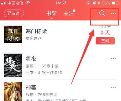 1、打開起點(diǎn)讀書APP,點(diǎn)擊右上角三個點(diǎn)。