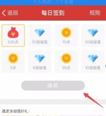 每天簽到的話,還可以免費(fèi)獲取一次抽獎的機(jī)會,一般都能抽到一些點(diǎn)數(shù),如圖所示。