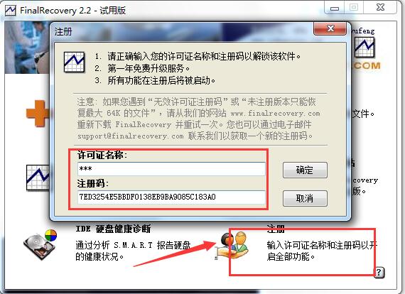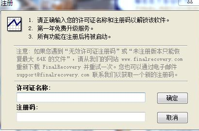 2、打開finalrecovery點擊注冊,將注冊碼粘貼點擊確定即可。