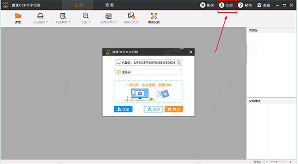5、然后雙擊桌面上的快捷方式,你會發(fā)現(xiàn)軟件界面不會再有注冊界面了,說明軟件破解成功,以后就可以免費使用捷速ocr文字識別軟件破解版了。